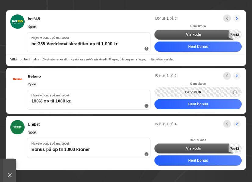 Unibet er kendt for deres innovative tilgang til online betting og har også et stort udvalg af handicap odds. Deres platform er intuitiv og nem at navigere, hvilket gør det enkelt at finde og placere væddemål. Unibet har også detaljerede statistikker og analyser, som kan hjælpe spillere med at træffe de bedste beslutninger om deres handicap odds. Med konkurrencedygtige odds og hyppige kampagner er Unibet et attraktivt valg for danske spillere.